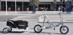 The Xootr Swift Bionx conversion is a light-weight folding electric bike that folds in two quick steps into a size of about 34" x 15" x 24".