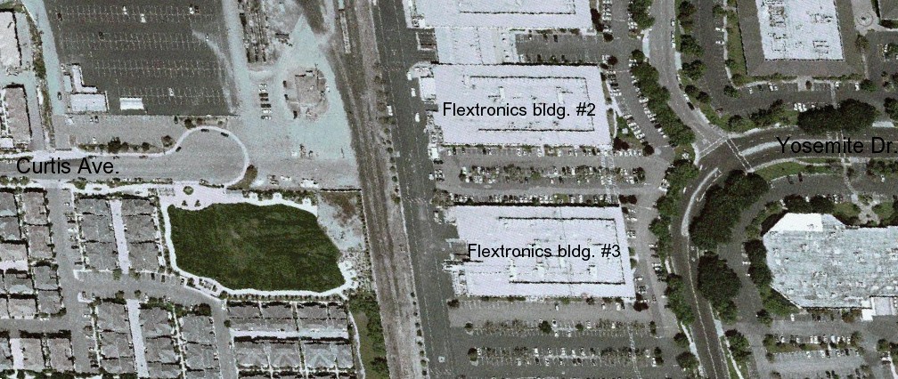 Ground-level impact on the east-side property lessee (Flextronics) is estimated to be eight footings (2' x 2') topped by 12" diameter poles supporting the guideway above.