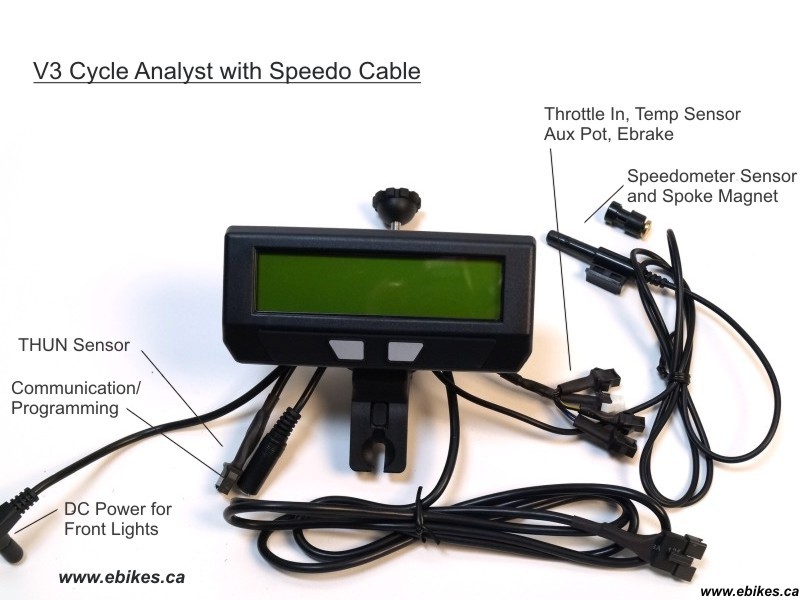 ![]() This is the V3 Direct Plug-in Cycle Analyst with Speedometer Pickup (CA3-DPS) for Geared and Mid-Drive Motors. This model directly integrates with the controllers in the shopping cart above. Click here for more info on CA V3. |